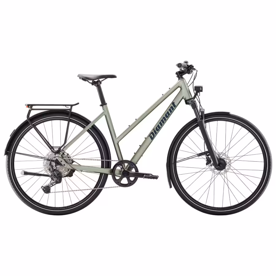 - Oświetlenie zasilane dynamem: Piasta z prądnicą Shimano 3.0W zasila mocne oświetlenie LED (przód Herrmans Nordic MR9 180 lumenów, tył Spanninga Pimento) z funkcją światła postojowego dla bezpieczeństwa po zatrzymaniu.